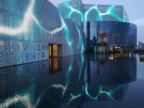 Струи, появляющиеся, кажется, прямо из стилобата, выглядят на фоне здания очень живописно. Со временем, уверены, именно фонтан станет визитной карточкой этого уже известного на всю Россию учреждения. Видео с поющим фонтаном в день его запуска практически мгновенно распространились по социальным сетям, что принесло ему недюжинную популярность.
